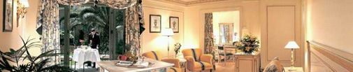109 guest rooms including 8 deluxe rooms and 18 suites. All roms are well-equipped, most with magnificent views over Lisbon and the Tagus River. Each room is unique, with its own individual Portuguese style, from 18th-century classical to art deco. All rooms equipped with: Hairdryer, safe, minibar, balconies or terraces, Satelite TV with VCR, 2 telephone direct lines, dataport, bathrooms most with separate showers and air conditioning. Suites also include a fax machine and an hi-fi with a selection of CD's. Video Library available through the Concierge. 24 hour room service, Bar Rio Tejo with live piano all evenings, Restaurant Hotel Cipriani open for lunches and dinners à la carte, Pool Bar/Restaurant Pavillion open during spring and summer time, indoor and outdoor heated swimming pools open all year round, separate concierge desk service, Laundry, Hotel shuttle service to downtown on request, wellness centre with sauna/steam bath/solarium/ hydromassage/aromotherapy/ fully equipped gymnasium/diferent types of massage and body and facial treatments with The Art of Beauty "La Prairie". At Lapa Palace there are also 6 private rooms for meetings & banquets from 20 to 250 people in theatre style, or 200 in banqueting style and one fully equipped auditorium. All rooms with natural day light and most with access to terraces facing the Hotel gardens and swimming pool.