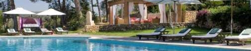 Description & Location Situated in a small valley in the centre of the island of Ibiza, between San Rafael and Santa Gertrudis, 12 mins. from Ibiza town and main beaches. There are 12 rooms and 5 suites, with hand painted bathroom wall tiles and hand-made terracotta floor tiles and traditional sabina wood beam ceilings.